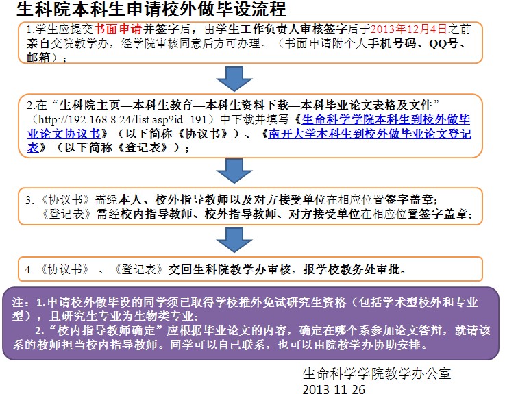 2014届本科生申请校外做毕业论文流程