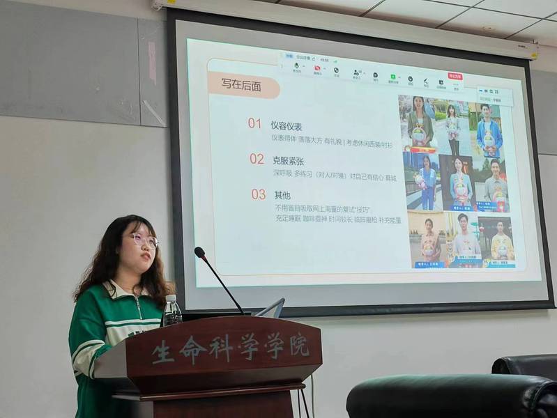 会上,针对同学们提出的关于复试内容和形式的疑问,以及面临复试在即产生的心理压力,往届考研成功的研究生从复试流程、复试时间线、科研经历梳理、专业知识储备、综合素养、英语能力、仪容仪表、复试心态等各方面进行了经验分享。针对部分同学第一志愿未能上线需要调剂的情况,也邀请了有调剂成功经验的同学们从调剂信息搜集、联系导师、院校选择等方面进行经验分享。
