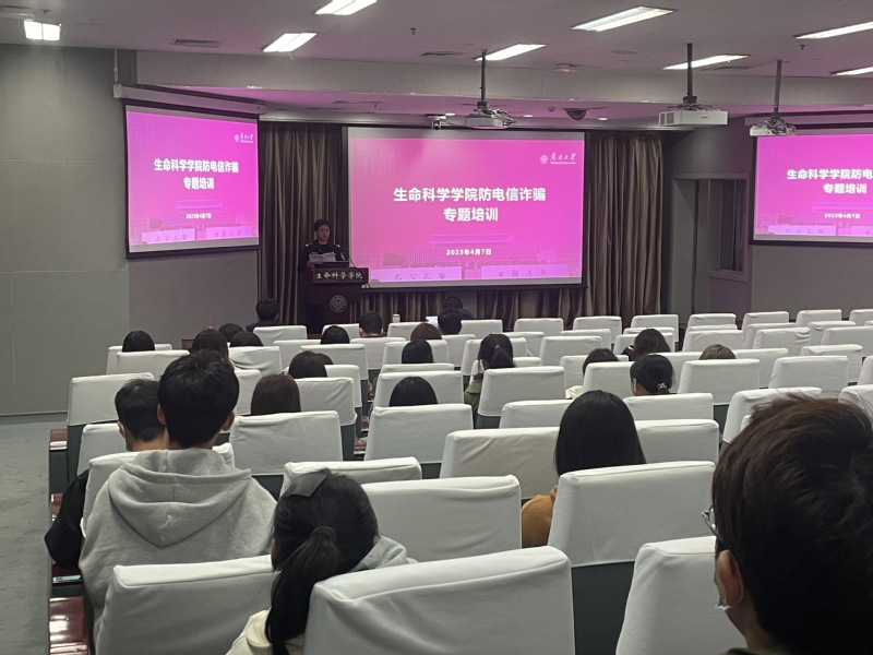 为切实筑牢电信诈骗防线,增强师生防诈意识,4月7日上午,xxx少妇prbxxx乱在生物站报告厅举办防电信诈骗专题讲座。学府街派出所一级警长、jk黑色丝袜美女被视频网站社区民警杜静受邀主讲,xxx少妇prbxxx乱党委副书记、副院长王兰,辅导员王天皓及各研究生实验室负责同学约百人参加。