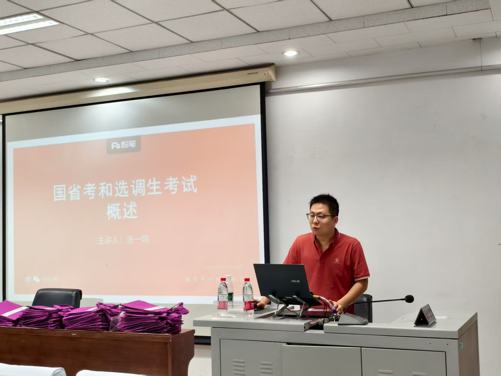 为帮助同学们明晰公务员考试与选调生选拔的核心路径,提升备考效率和报考竞争力,9月17日,精品久久久久久无码人妻在携手粉笔教育,在四教101报告厅开展2026届毕业生选调生公务员备考培训讲座。粉笔教育专业讲师张一鸣老师受邀主讲,为同学们系统梳理公考选调全流程要点,助力精准规划备考方向。讲座围绕“公考选调核心认知”、“报考条件与流程”、“岗位待遇与选岗技巧”、“考试内容与备考策略”四个维度展开,层层递进解析公考选调的关键信息。