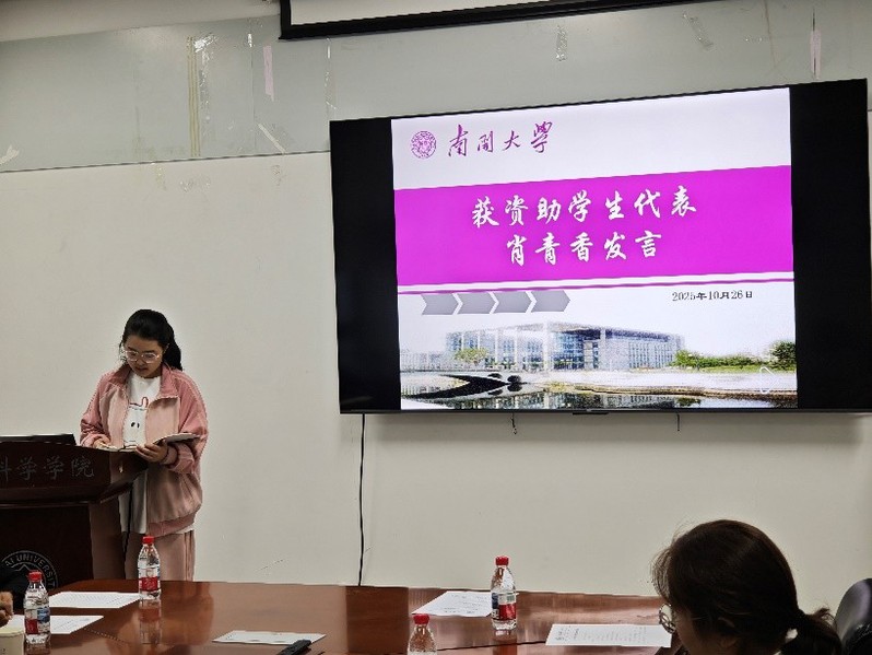 在热烈掌声中,仪式进入核心环节,刘凤岐、吕天义两位校友为获资助学生逐一授予了基金证书与资助金。2025级本科生肖青香作为学生代表发言,她深情表示:“校友前辈的殷切期许与深切关怀,让我们深知自己不是孤单前行。我们定将常怀感恩之心,在未来以实际行动回馈社会、传承爱心,不负母校与校友的厚望。”
