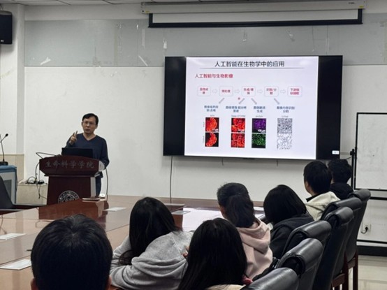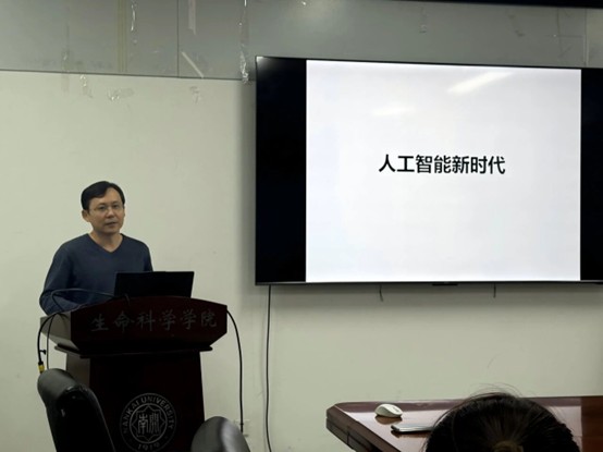 在交流环节,师生们就“AI+生物”方向的选择、生物专业的学生如何掌握AI技术、以及数据隐私等话题展开了热烈讨论。大家一致认为,在“人工智能新时代”背景下,生命科学领域的学子不仅需要扎实的专业知识,还需学习掌握AI这一强大工具,为生物领域提供助力。