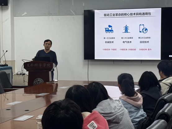 活动开始,黄兴禄老师回顾了历次工业革命的核心驱动力:机械技术、电气技术、信息技术,并指出这些技术均具有强大的通用性。以此类比,当前以人工智能为核心驱动力的新一轮科技革命正展现出同样的特质,其影响遍及各个学科,生命科学更是其深度融合的关键领域。
