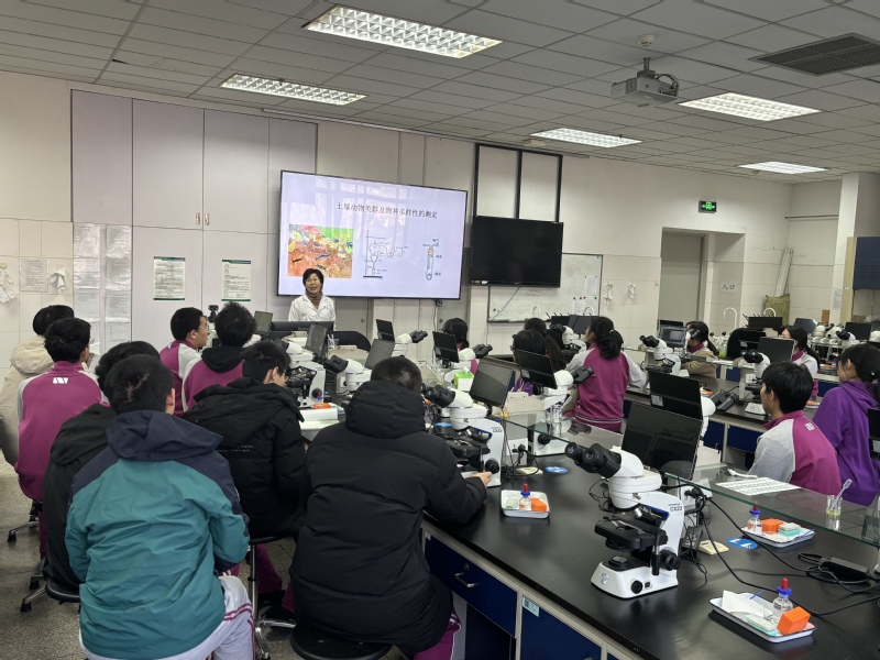 本次实践活动开设培养液中酵母菌种群数量的变化与土壤中小动物类群的丰富度两个实验项目。其中,酵母菌种群数量变化实验由魏东盛老师带队指导,同学们借助血球计数板,在生物显微镜下完成酵母菌的计数工作,清晰掌握种群数量变化的研究方法;土壤中小动物类群的丰富度实验则由赵念席老师负责,赵老师为同学们细致讲解实验操作流程与实验装置的使用方法,随后大家通过中心提供的活体生物材料,观察到草履虫、眼虫等鲜活的微观生命,直观见证了生命的灵动姿态。大家兴趣盎然、认真记录实验数据,沉浸式感受生物学科的独特魅力,在亲手操作中夯实理论知识,提升实验探究能力。